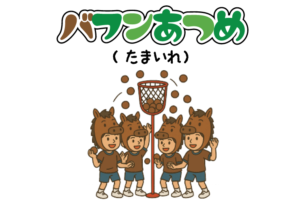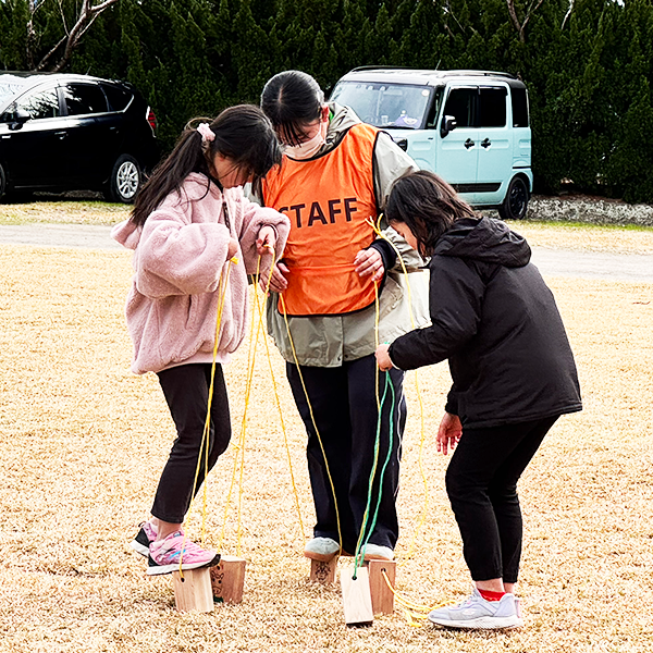 第1回から安定して実施している「ウマがあうわね」。二人三脚までは簡単だけど、3人になった瞬間に難易度が上がります。途中で頭と足がこんがらがってきますよね。よほどウマがあわないと難しいのです。いつかタイムレースやリレーなんかもやってみたいですね!