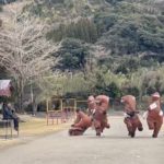 「木製たけウマぱかぱか」幼いころ、缶詰の空き缶に紐を通して、それに乗って遊んでいました。今回、南那珂森林組合さまに角材を製材していただき、それで「木製ぱかぱか」をしてみたのですが…大人には難しい!!重心が高くなるからかな?とてもじゃないけど歩くことができませんでした。大人になってできなくなることが増えていくことを実感した遊びでした。