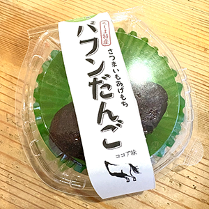 「バフンだんご」。食べ物を扱う方からすると、「バフン」というネーミングは勇気がいると思います。だってう◯こなんですから。でもずっと本物のバフンを見て「おはぎみたい」と思っていた私は、いつかだれかに作って欲しいと願っていました。いろんな方に打診をしてみたものの、作ってくれる方はおらず。そこでさつまいもで揚げ餅を作っている「ほんわか農園」尋ねたところ、快諾をしてくれたのです!揚げ餅にココアを練り込むだけだったのですが、それだけで外はさくさく、中はもっちりした食感に。見た目はアレですが、味は間違いないウマさです。